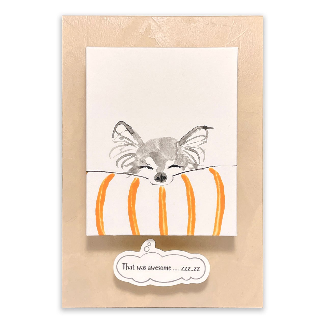 Sleeping Dog(チワワ-1 / 生成り地)は、可愛らしいチワワがベッドで気持ちよさそうに眠っている姿を水彩画で表現した心温まるアイテムです。シンプルながらも愛らしいイラストが、見せるだけで癒やしの空間を演出します。お部屋のインテリアにぴったりな一品です!