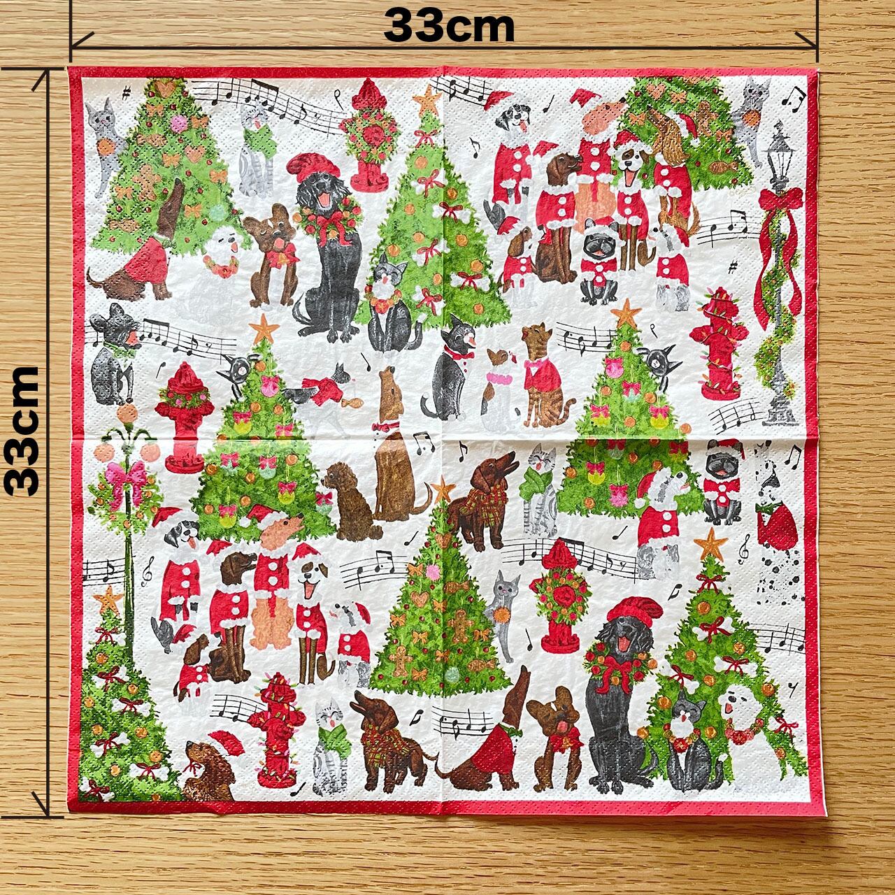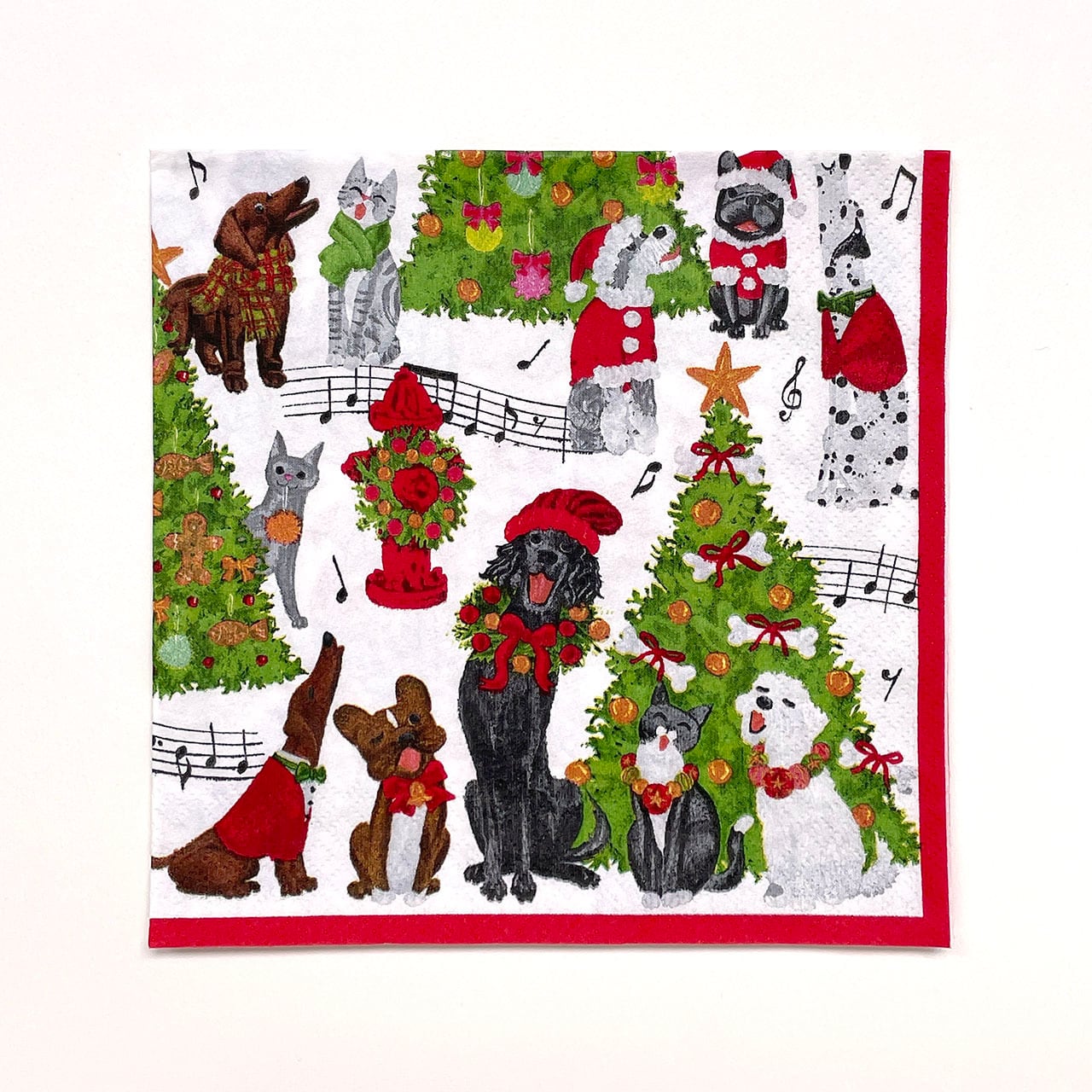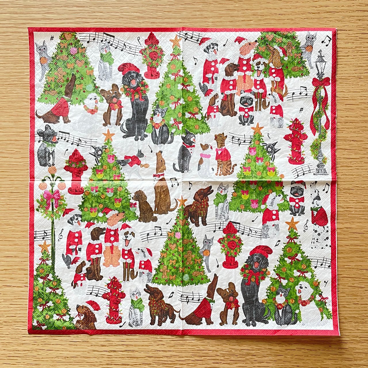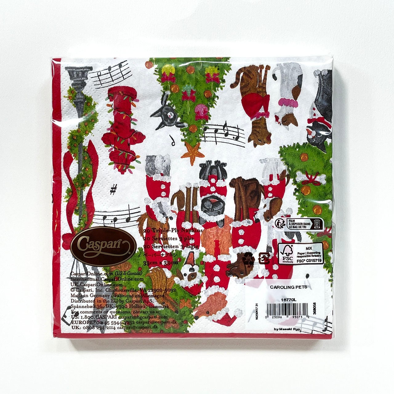 アメリカのCaspari社によるクリスマスシリーズのひとつで、音楽と笑顔に満ちた華やかなデザイン。ホリデーシーズンのテーブルを明るく彩ります。