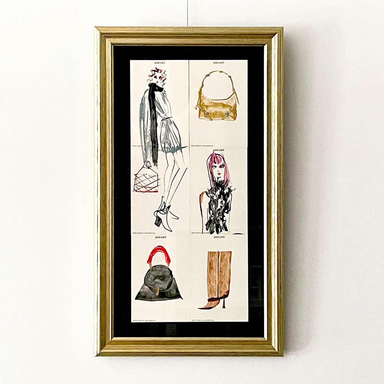 シンプルで軽やかなタッチが魅力のファッションイラスト(原画)。ペインティングナイフで描かれた荒々しい線が、独特の魅力を放ちます。ポストカードを再利用して描かれたこのイラストは、繊細な色使いと個性的なデザインが特徴。お部屋のインテリアやギャラリーウォールに飾って、おしゃれでセンスの良い空間を演出してみてはいかがでしょうか。