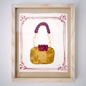 ペインティングナイフで描かれたハンドバッグとフレームをコラージュしたオリジナルの原画です。ペインティングナイフ独自のタッチが特徴で、目を惹く作品に仕上がっています。飾る場所を選ばないスタイリッシュなデザインが魅力です。